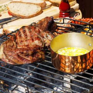 Une première caractéristique importante du barbecue kamado Kamal est que vous pouvez commencer votre séance de barbecue très facilement. Grâce aux quatre roues robustes, vous pouvez simplement faire rouler le BBQ kamado de son espace de rangement à la terrasse. Vous allumez ensuite votre grill kamado en remplissant le panier de charbon de bois pour environ ½ avec du charbon de bois et en l’allumant avec des allume-feu. L’alimentation en air en bas doit être complètement ouverte et le couvercle doit également être ouvert. Le corps en céramique autour du panier (foyer) retient parfaitement la chaleur et assure que la flamme s’allume rapidement. Une fois qu’il y a une couche de cendres grises sur les charbons, vous pouvez commencer le barbecue.