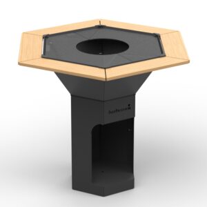Le barbecue kamado Kamal 53 a une finition noire brillante avec un beau relief de feuilles. Ce barbecue au charbon de bois a une hauteur de travail de 82,5 cm et dispose d’une grille en acier inoxydable d’un diamètre de 46 cm. Avec ce barbecue céramique, vous pouvez faire un barbecue pour 8 personnes. Le Kamal 53 pèse 93 kg (net) et est facile à déplacer grâce aux roulettes robustes et aux deux freins. De plus, vous pouvez utiliser les deux tables latérales comme surface de travail et les plier ensuite lors du rangement de votre appareil. Ce grill kamado dispose également d’un thermomètre intégré qui affiche la température en °C et °F, et peut aller au-delà de 1000 °C. C’est un équipement véritablement polyvalent. Choisir notre barbecue kamado Kamal, c’est choisir un investissement à long terme !